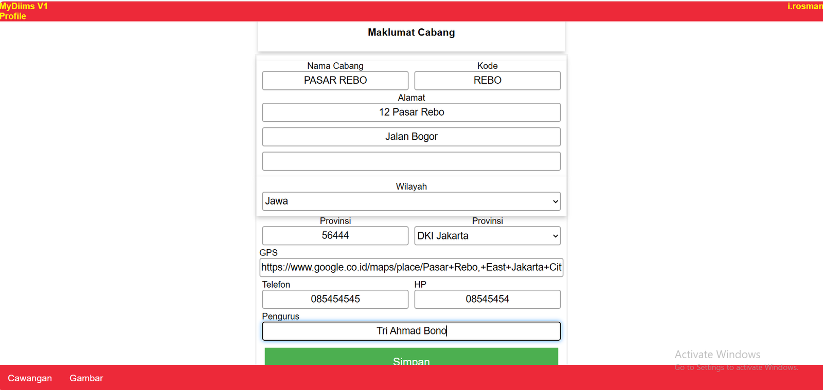 Isikan Maklumat Cawangan seperti Alamat, Nombor HP an Alamat GPS (boleh di dapati menggunakan applikasi Google Map)