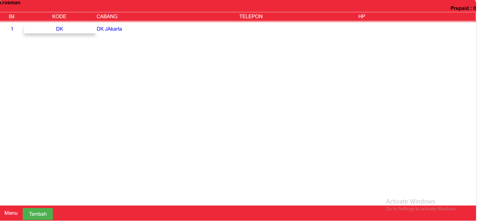 Klik Kode Cabang untuk membuka informasi cabang lainnya