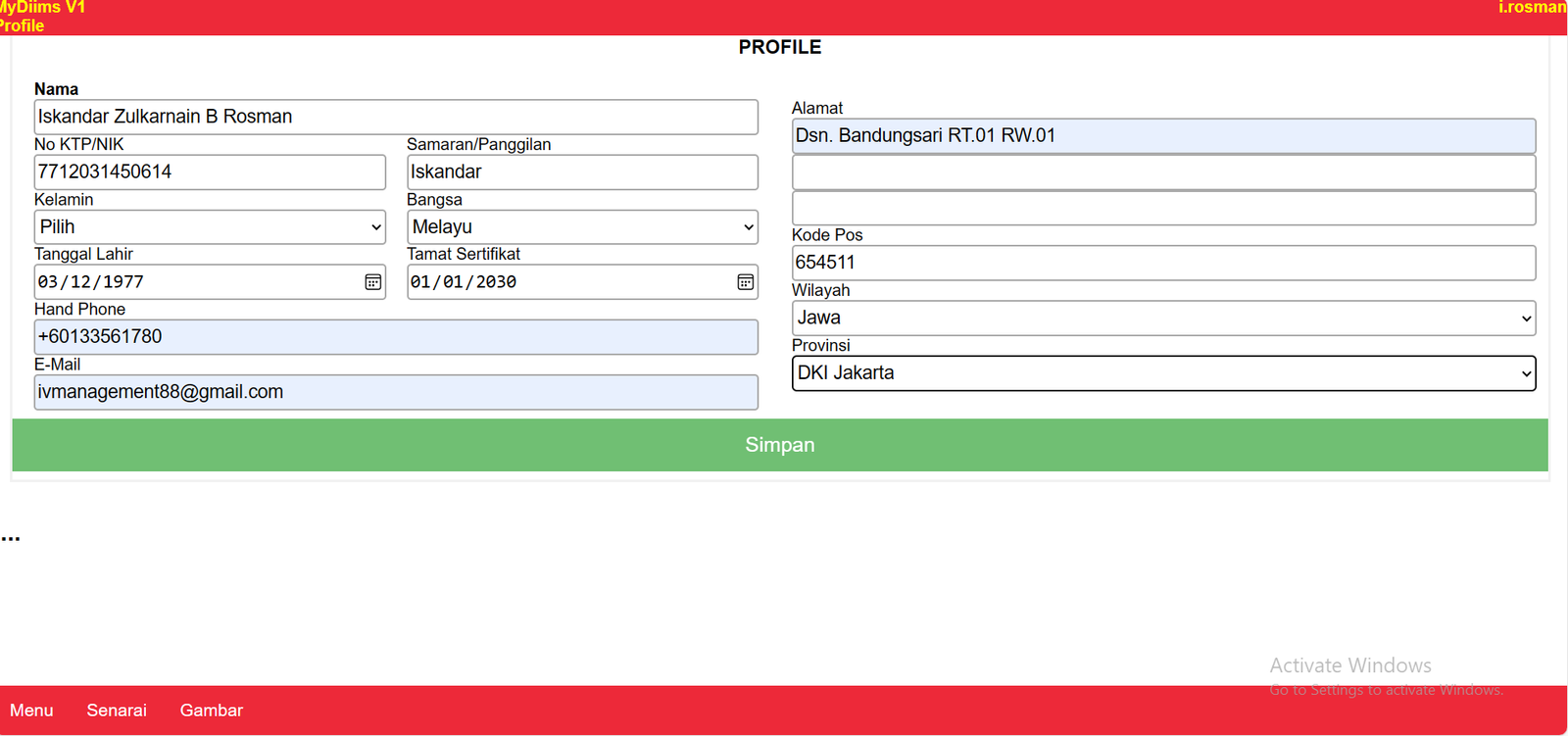 Klik Simpan Setelah Selesai Rekam di isi