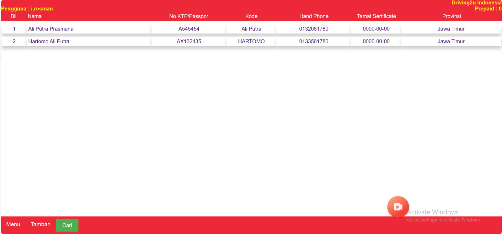 Senarai Karyawan/Instrukur akan terpapar